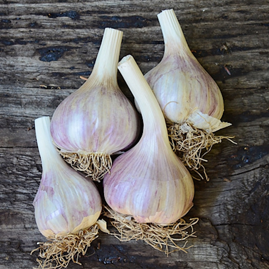 This garlic is intended for culinary use. While perfectly lovely to eat, these bulbs are much smaller, and some may carry yellow aster phytoplasma, which can affect clove development in the garden.